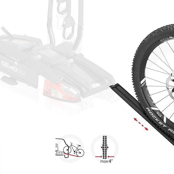 De inklapbare aluminium oprijgoot maakt het laden van fietsen op je Genio Pro fietsendrager extra eenvoudig. Dankzij het lichte gewicht van slechts 1,34 kg en compacte formaat (116 x 15,5 x 10 cm; ingeklapt 56 cm) berg je hem gemakkelijk op. De rail is geschikt voor vrijwel alle fietsen, van lichte stadsfietsen tot zware e-bikes. Je bevestigt de oprijgoot snel en gemakkelijk aan je drager, waarna je gemakkelijk en zonder beschadigingen tot wel drie fietsen kunt plaatsen.