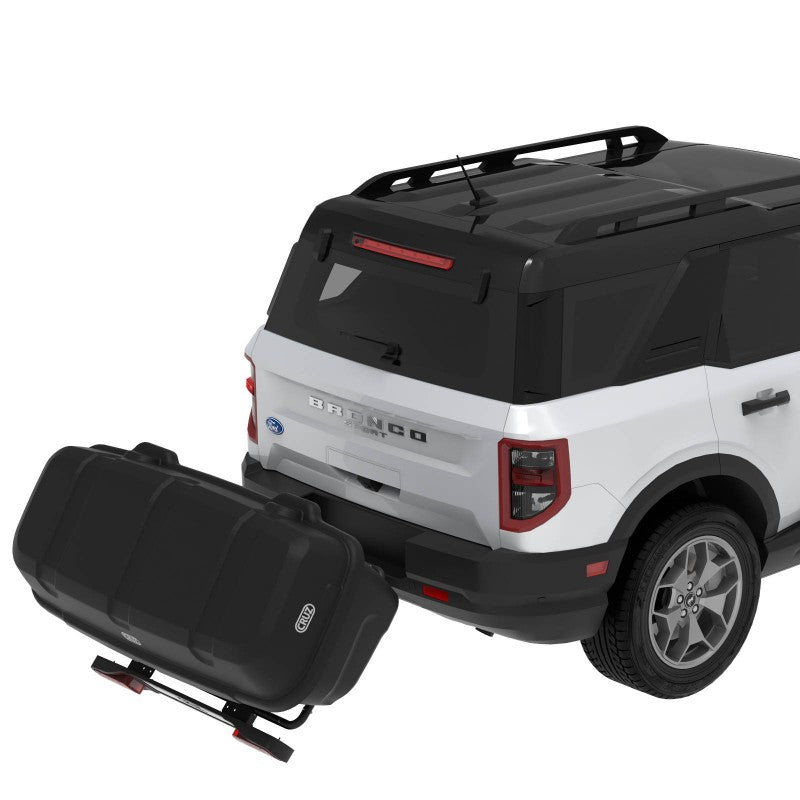 De CRUZ Tailo Platform Compleet bestaat uit het CRUZ Tailo platform en de ruime CRUZ Sector bagagebox (400L). Deze combinatie biedt een toegankelijke oplossing voor het vervoeren van grote ladingen zoals koffers, kinderwagens of kampeerspullen. De bagagebox benut de beschikbare ruimte efficiënt en is eenvoudig bereikbaar aan de achterkant van het voertuig. Dankzij de kantelfunctie blijft de kofferbak toegankelijk, zelfs wanneer de drager is beladen.