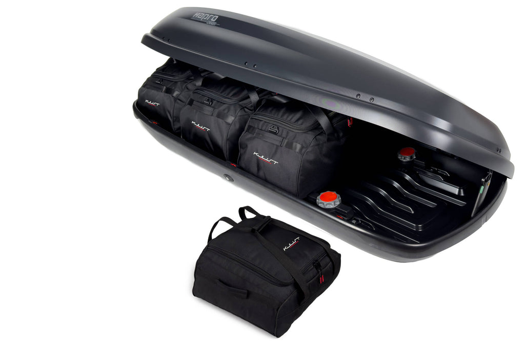 - De tassen zijn speciaal ontworpen om naadloos in de dakkoffer te passen, waardoor de beschikbare ruimte optimaal wordt benut.