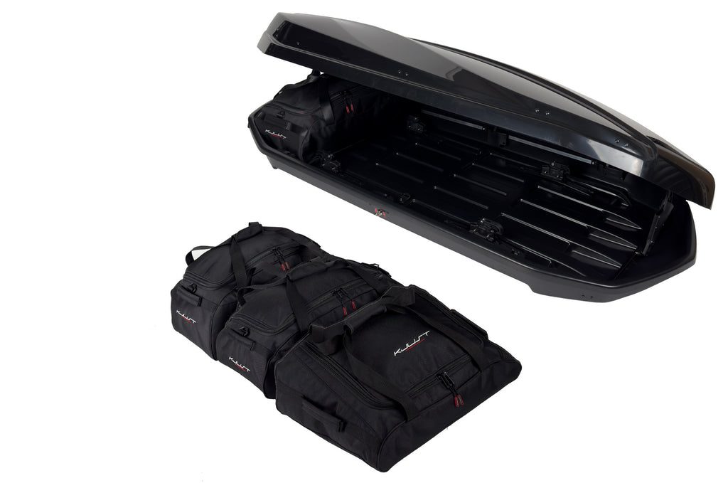 - De tassen zijn speciaal ontworpen om naadloos in de dakkoffer te passen, waardoor de beschikbare ruimte optimaal wordt benut.