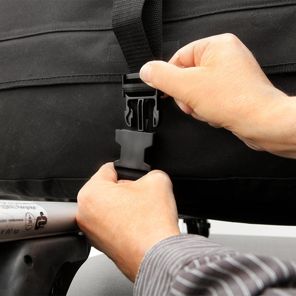 De dakkoffer tas van Fischer is een nieuw innovatief alternatief voor een dakkoffer. Met een maximaal laadvermogen van 50kg, kan je alles gemakkelijk meenemen. Door het compacte ontwerp kan het gemakkelijk opgeborgen worden, maar ook gemakkelijk op het dak gemonteerd worden. Er is geen extra gereedschap nodig, en geschikt voor dakdragers tot wel 80mm breed. Door de metalen ondergrond blijft de dakkoffer stabiel tijdens de reis.