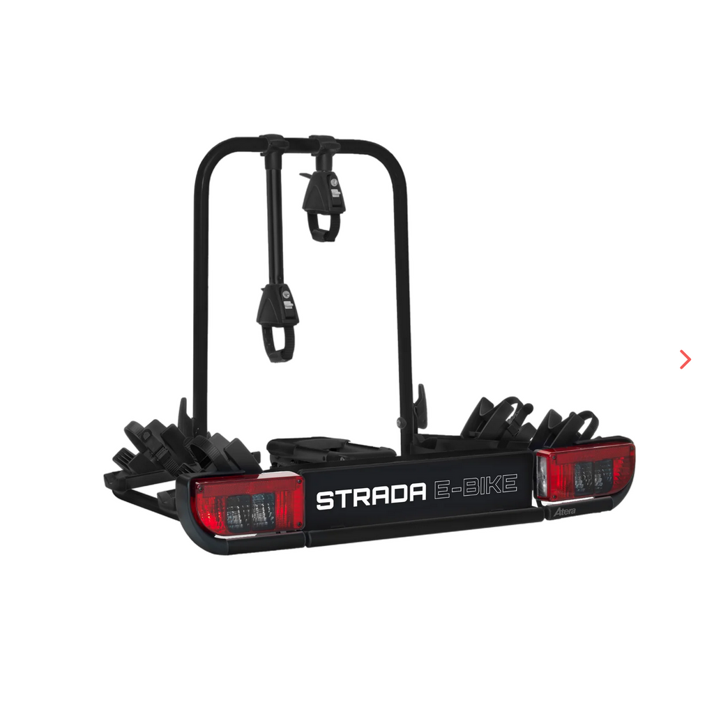 De Atera Strade E-bike Black Edition is een makkelijke fietsendrager, perfect voor elektrische fietsen. Dankzij het stevige ontwerp vervoer je moeiteloos twee e-bikes met een totaalgewicht tot 60 kg. Je monteert de drager eenvoudig op de trekhaak zonder gereedschap, en door het slimme, inklapbare design berg je 'm na gebruik makkelijk op. De kantelfunctie zorgt ervoor dat je zelfs met fietsen erop toegang houdt tot je kofferbak.