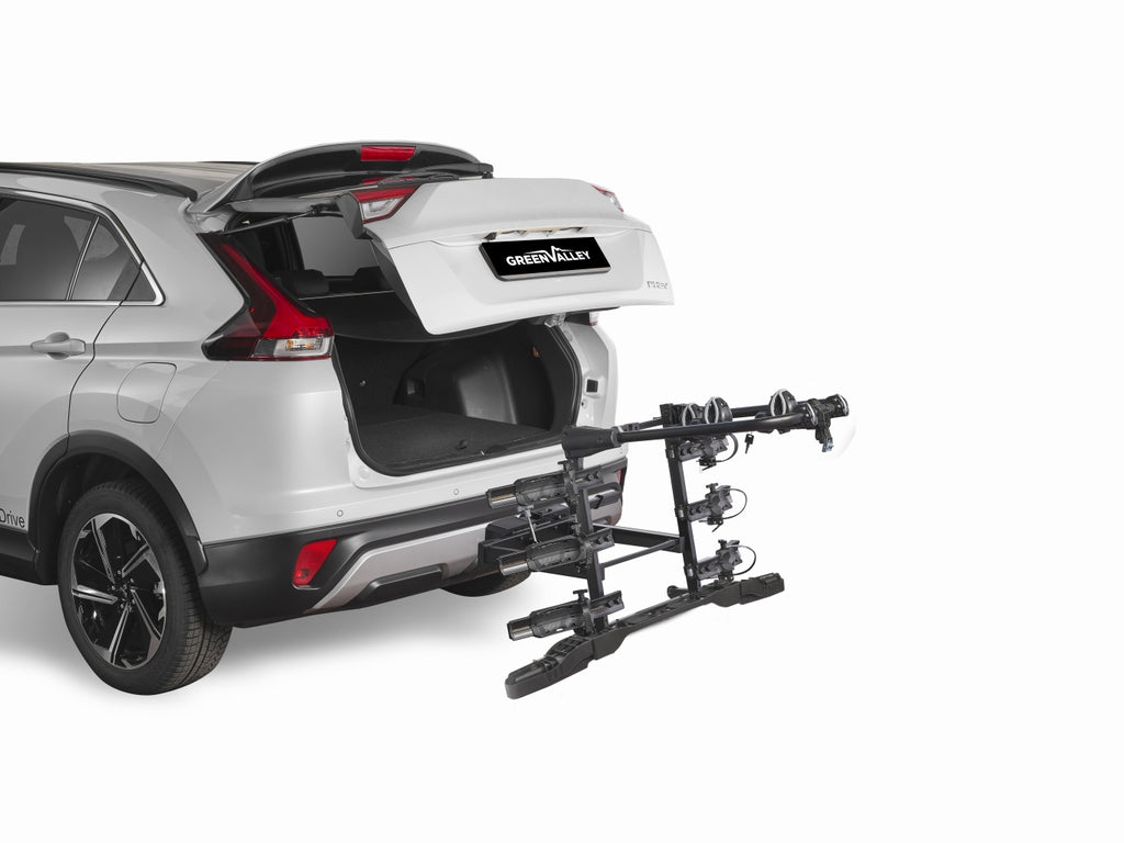 De Green Valley Tourer 3 fietsendrager is ideaal voor het veilig vervoeren van drie (elektrische) fietsen tot 60 kg. Je fietsen én de drager zijn beschermd tegen diefstal dankzij de ingebouwde sloten op de koppeling en het frame. Het kantelsysteem maakt het mogelijk om gewoon bij je achterbak te kunnen, zelfs als de fietsen gemonteerd zijn. Na je rit klap je de drager moeiteloos in, perfect om ruimte te besparen in je schuur of garage.