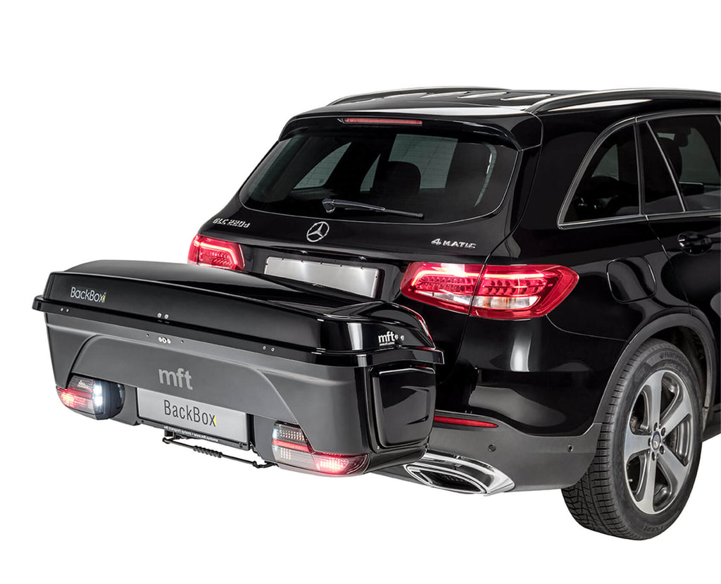 De BackBox is de slimme bagageoplossing die zich aanpast aan jouw situatie. Deze box wordt eenvoudig gemonteerd op de trekhaak met de BackCarrier en biedt met inzetstukken een variabele inhoud van 300 tot 326 liter. Ideaal voor het vervoeren van 4 paar ski’s of 2 grote golftassen. Dankzij verwisselbare zijpanelen kun je zelfs ski’s tot 187 cm meenemen. De hoogglanzende behuizing is krasbestendig en voorzien van moderne LED-verlichting, spanbanden, schuimrubberen inserts en afwateringsventielen voor veilige, droge en stabiele lading. Houd rekening met een maximale snelheid van 160 km/u. Bij voertuigen met krachtige motoren en een ongunstige uitlaatpositie kunnen hitteschilden vereist zijn, neem contact met onze klantenservice.