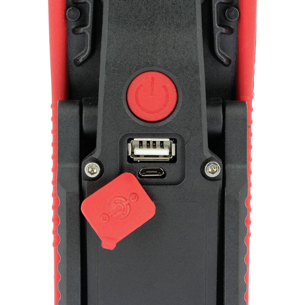 Deze lamp heeft een USB-poort van 1,0 A waardoor de draagbare batterijfunctie een laptop van stroom kan voorzien, wat erg handig is bij het oplossen van problemen. USB-kabel meegeleverd om op te laden. Een grote batterijcapaciteit van 4400 mAh, waardoor een groot gebruik mogelijk is. (van 2 tot 6 uur, afhankelijk van de gebruikte modi)