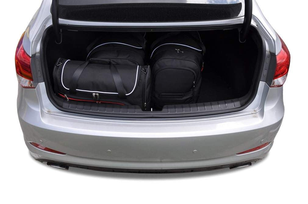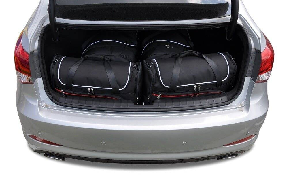 Maximaliseer de kofferbakruimte van je Hyundai i40 Sedan (2011-) met de op maat gemaakte KJUST tassenset. Deze tassen benutten de ruimte optimaal, zorgen voor efficiënte verpakking en veilig transport. Ideaal voor vakanties, outdoor activiteiten, fitness en een actieve levensstijl.