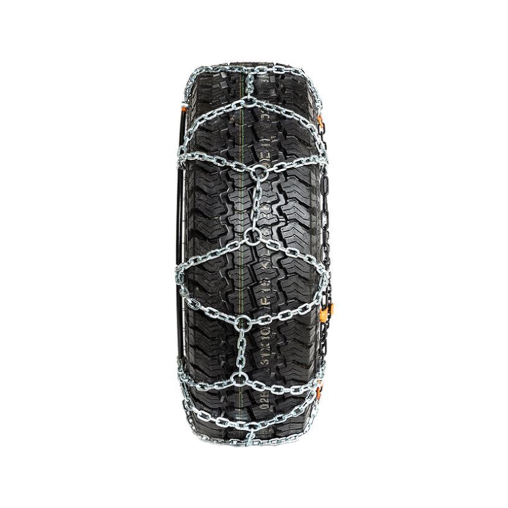 Voor zwaar werk biedt Weissenfels de RTR REX TR aan: een sneeuwketting die ideaal is voor bedrijfswagens en 4x4's. Dankzij de stevige binnenkabel van 5,5 mm is deze ketting eenvoudig te plaatsen. Haak de ketting aan de bovenzijde van de band, verdeel de schakels gelijkmatig, bevestig de spanketting, en je voertuig heeft weer voldoende grip voor bergachtig terrein. Na 20 meter rijden kun je de ketting nog eens naspannen voor extra zekerheid. Ook het verwijderen is simpel: maak twee haakjes los en berg de ketting op in de meegeleverde tas. Met schakels van 17 mm dik is de REX TR geschikt voor zware voertuigen, waardoor je langdurig plezier zult hebben van deze ketting. Hij is niet alleen robuust maar ook handig voor modderige omstandigheden.