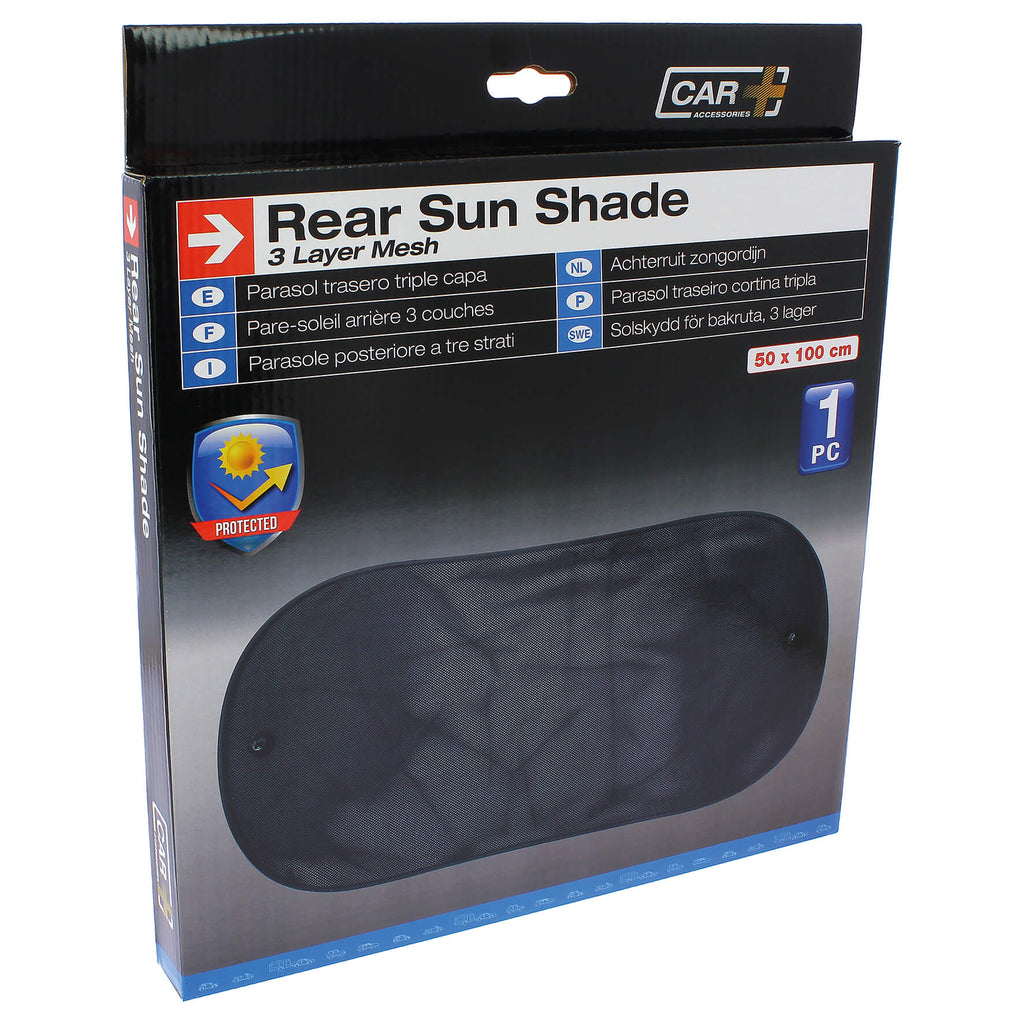Je plakt het zonnescherm gemakkelijk tegen je achterruit met de bijgeleverde zuignappen. Door het 3 -laags scherm heeft u een bescherming van factor 25 tegen de zon.