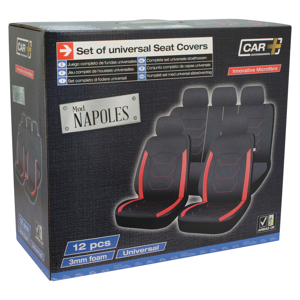 Stoelhoezen set Napoles 12-delig zwart-rood