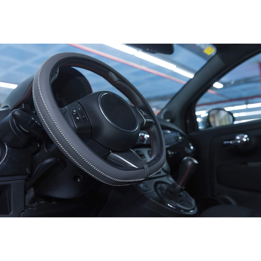 Stuurhoes auto universeel type Artisan donker grijs met wit sticksel