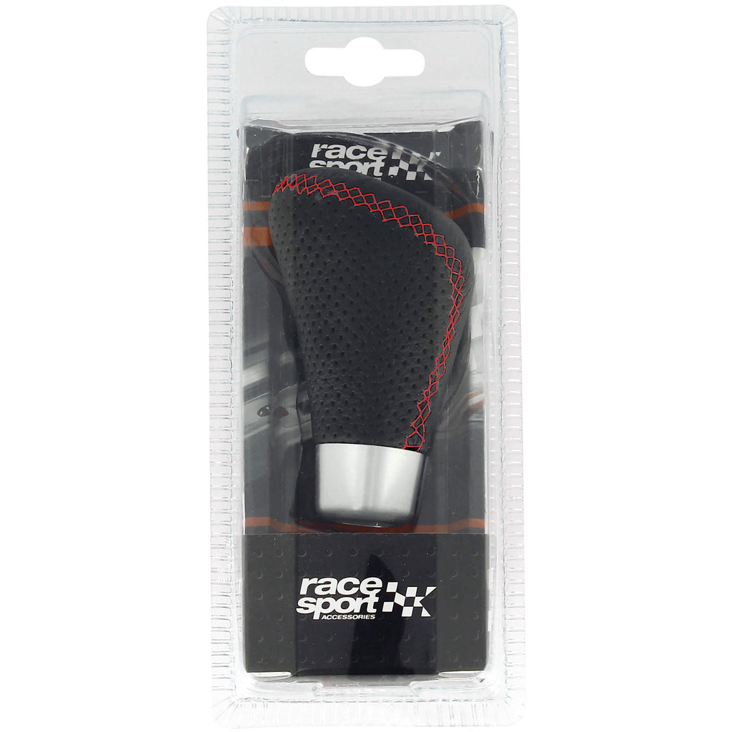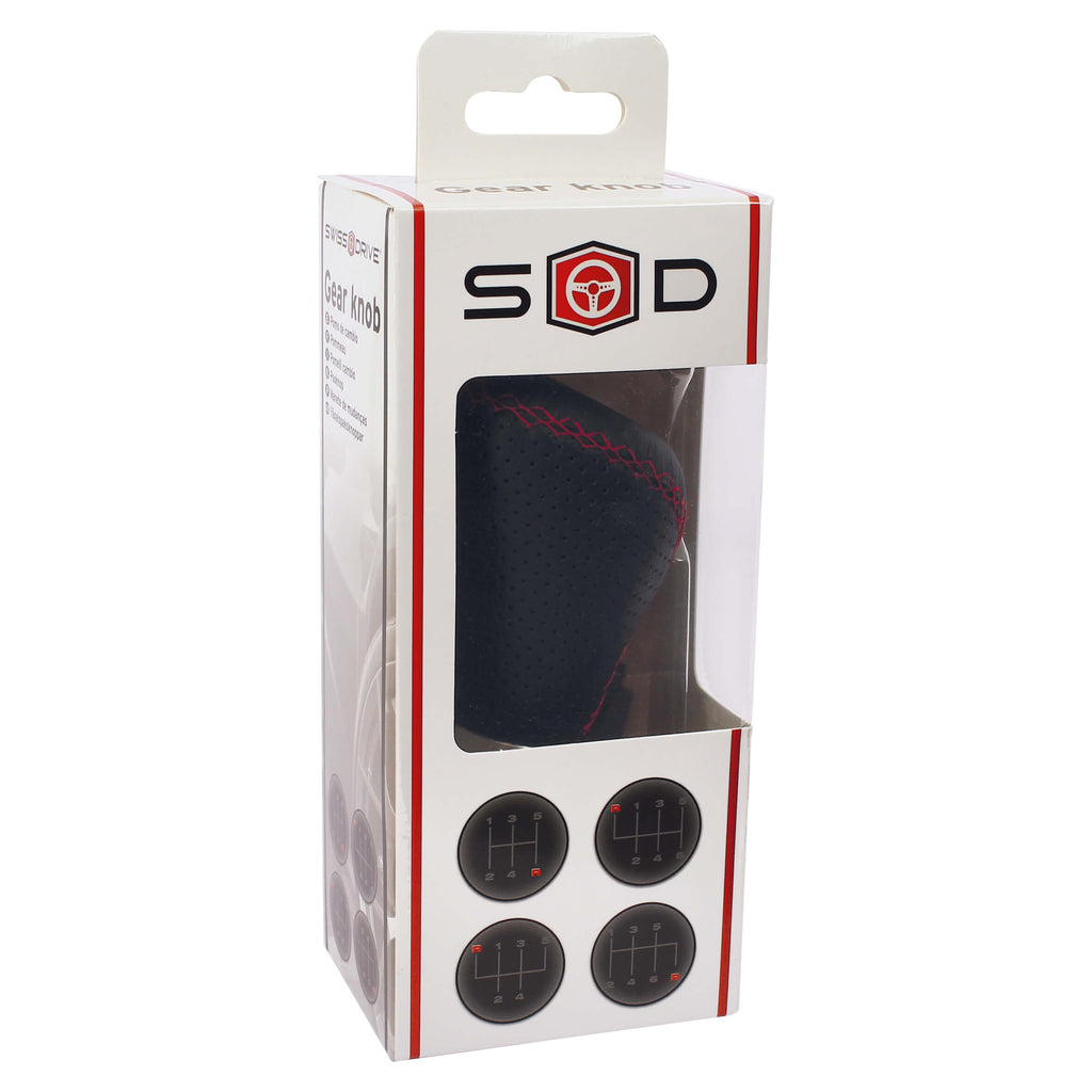 Universele versnellingspook zwart leder met Rood sticksel