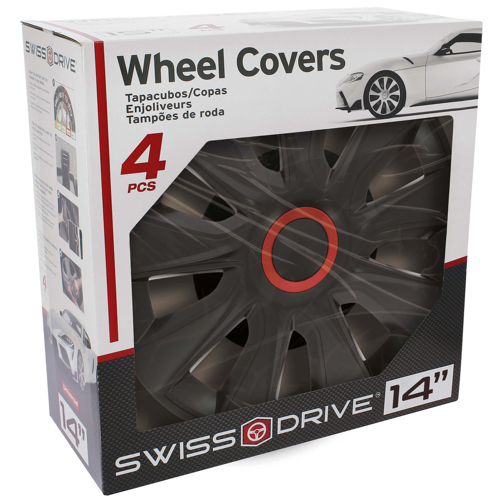 De 14 inch washington zwart rood wieldoppen van CARPlus zijn een complete set van 4 wieldoppen inclusief veilige vergrendelingsringen zal het uiterlijk van uw auto in enkele seconden transformeren. Gemaakt van hoogwaardig, slagvast en hittebestendig ABS.
