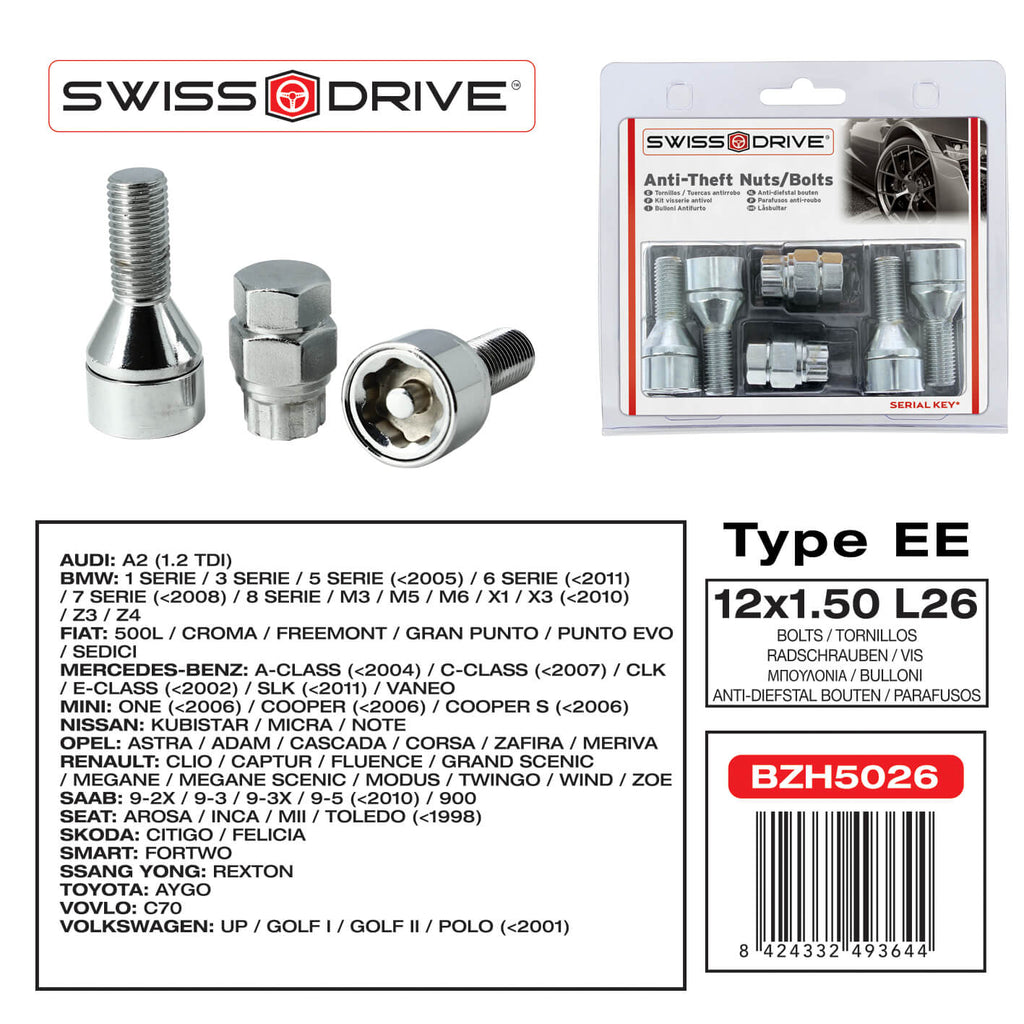 Anti-diefstal wielbouten M12x1.50 L26 T17 Butzi Premium