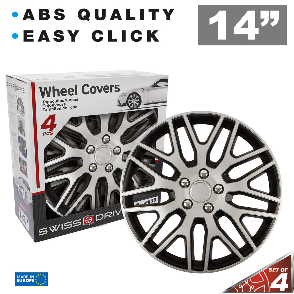 De 14 inch delaware zwart zilver wieldoppen van CARPlus zijn een complete set van 4 wieldoppen inclusief veilige vergrendelingsringen zal het uiterlijk van uw auto in enkele seconden transformeren. Gemaakt van hoogwaardig, slagvast en hittebestendig ABS.