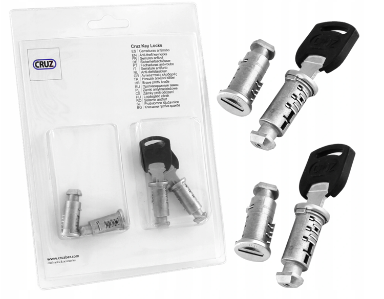 Veiligheidssloten geschikt voor de Cruz producten, antidiefstalsloten bestaande uit een set van 4 stuks met 2 sleutels.