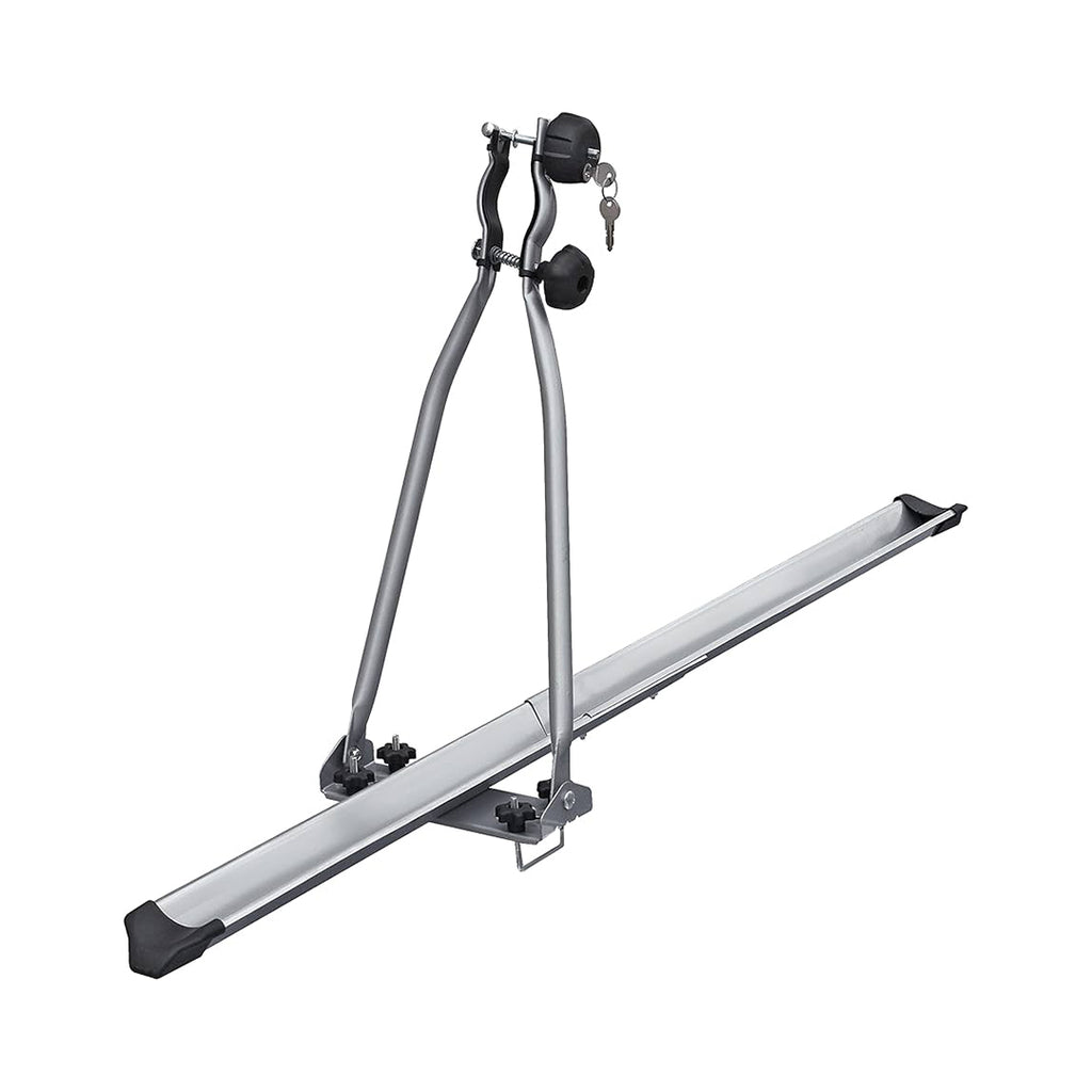 De Menabo Huggy Lock fietsendakdrager is een lichte en universele fietsdrager die geschikt is voor iedere dakdrager. Dankzij de eenvoudige bevestiging via T-sleuf of U-beugel plaats je de fietsendrager snel en stevig op je dak. Het geïntegreerde slot en de zachte framebeschermer zorgen ervoor dat je fiets onderweg veilig en onbeschadigd blijft. De drager is geschikt voor fietsframes van 28 tot 70 mm en heeft een draagvermogen tot 15 kg. Voor extra veiligheid zijn de spanbanden met snelsluiting aanwezig, waarmee je voor- en achterwiel eenvoudig en stevig vastzet. Uiteraard TÜV-gekeurd en City Crash getest.