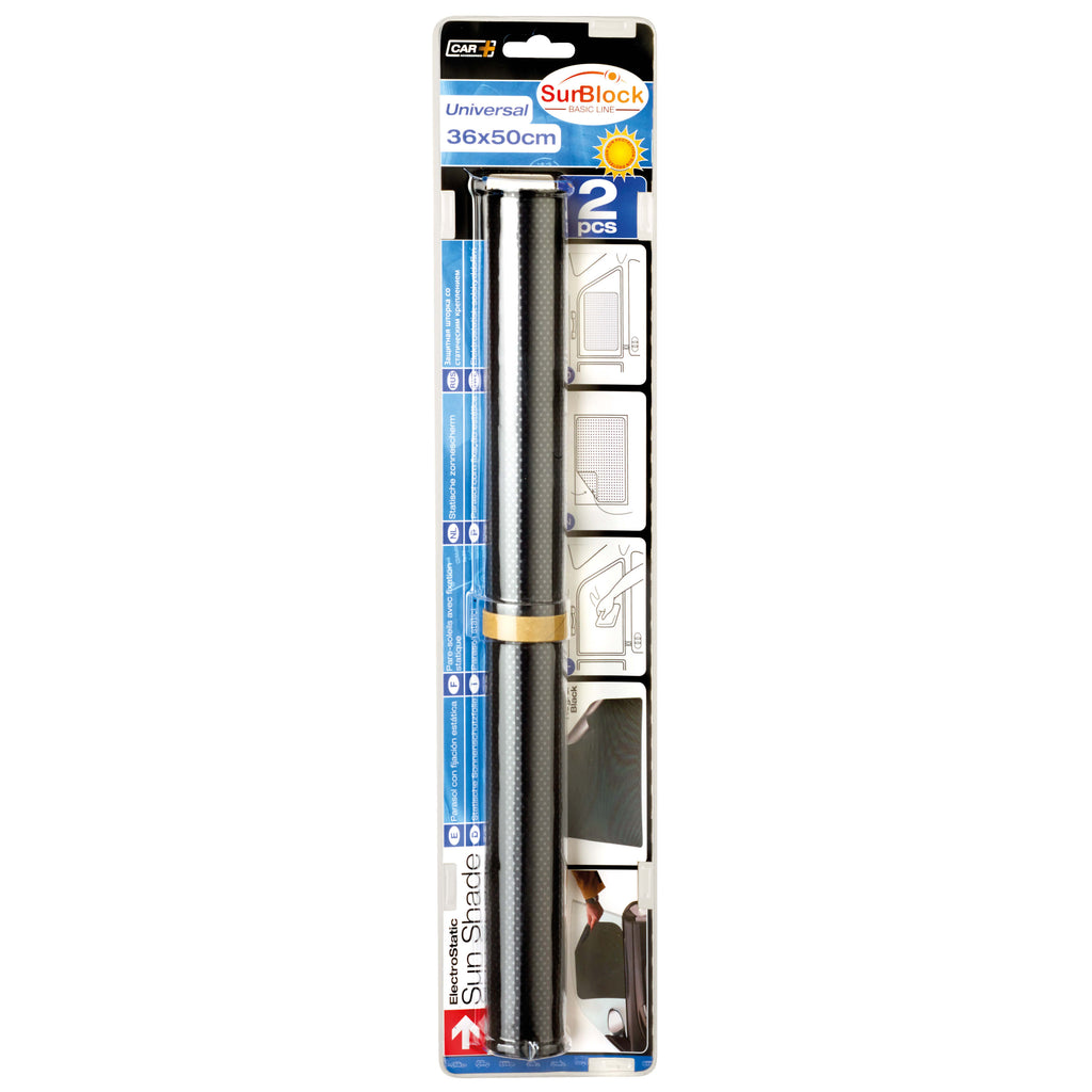 Eenvoudig aan te brengen zonnescherm door zijn statische werking. Word gelever op een rol en heeft een afmeting van 36x50cm.